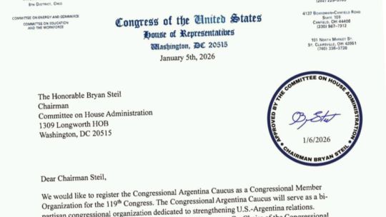 El Congreso de Estados Unidos ha revivido un grupo bipartidista especial centrado en las relaciones con Argentina, como parte de un intento por fortalecer los vínculos políticos y económicos con Buenos Aires. La Cámara de Representantes ha reactivado el Caucus del Congreso de Argentina, un organismo encargado de supervisar las relaciones bilaterales. La medida fue iniciada conjuntamente por un legislador republicano y un demócrata, confirmó una fuente en el Congreso. “El comité administrativo ha aprobado oficialmente nuestro registro”, afirmó Gabe Gary, asesor de Michael Rulli (republicano por Ohio), en declaraciones recogidas por la agencia de noticias AFP. La noticia fue confirmada posteriormente por el embajador de Argentina en Estados Unidos, Alejandro ‘Alec’ Oxenford, en una publicación en las redes sociales. El Caucus del Congreso de Argentina es una agrupación bipartidista. Los caucus del Congreso son asociaciones formales de legisladores reunidos por un interés compartido, independientemente de su afiliación partidista. Un asistente de Rulli dijo vía correo electrónico que el legislador republicano y su colega representante Darren Soto (demócrata-Florida) son los impulsores de esta “plataforma bipartidista dedicada a impulsar las relaciones entre Estados Unidos y Argentina a través de sesiones informativas, eventos y debates”. El dúo actuará como copresidentes. El caucus argentino funcionó anteriormente desde 2017, durante el primer mandato de Donald Trump en la Casa Blanca, y permaneció activo hasta 2023. Su relanzamiento se produce en medio del desarrollo de vínculos diplomáticos y económicos más estrechos entre Trump y el presidente de Argentina, Javier Milei. Estados Unidos brindó un apoyo financiero crucial a Argentina en octubre pasado, otorgando un swap de divisas por 20 mil millones de dólares destinado a estabilizar el peso, que estaba bajo una fuerte presión del mercado antes de las elecciones clave de mitad de período. Esa asistencia, junto con el respaldo político adicional de Trump y los miembros visitantes de su gabinete, ayudó al gobierno de Milei a asegurar una victoria electoral, de la cual el líder de La Libertad Avanza salió políticamente fortalecido. Argentina y Estados Unidos ahora están participando en conversaciones comerciales para ampliar los vínculos comerciales. Washington ha manifestado interés en negociar las importaciones de carne vacuna para ayudar a frenar los precios en su mercado interno, una medida que ha provocado protestas de los ganaderos estadounidenses. En noviembre, Washington anunció que se estaban discutiendo una serie de acuerdos de libre comercio con Argentina, Ecuador, El Salvador y Guatemala. Milei, que se ha reunido con Trump en varias ocasiones, ha buscado profundizar las relaciones con Estados Unidos en todos los ámbitos, incluso en cuestiones geopolíticas. La semana pasada, Buenos Aires respaldó plenamente la repentina destitución del líder venezolano Nicolás Maduro del poder en Caracas. Maduro se encuentra ahora detenido en Estados Unidos, donde espera juicio en Nueva York por cargos de tráfico de drogas y armas. – Noticias relacionadas con TIMES/AFP