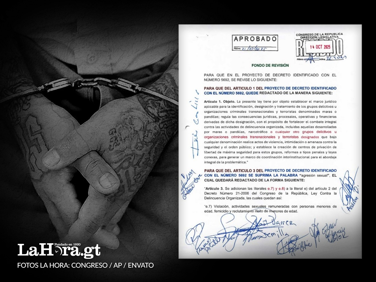 Ley para el Combate Frontal a las Actividades Delictivas de las Maras. Arte La Hora: Alejandro Ramírez. El Congreso de la República aprobado este martes 21 de octubre el Decreto 11-2025, denominado Ley para el Combate Frontal a las Actividades Delictivas de las Maras, conocida también como Ley antipandillas, mediante la cual se declara a las maras y pandillas como organizaciones terroristas.