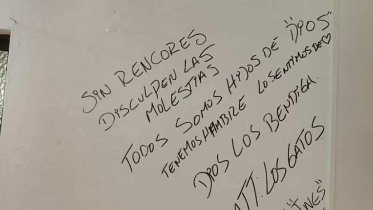 El mensaje dejado por los ladrones tras el hurtoUno de los elementos que más ha causado indignación en la comunidad fue el mensaje dejado por los autores en una de las paredes del centro.