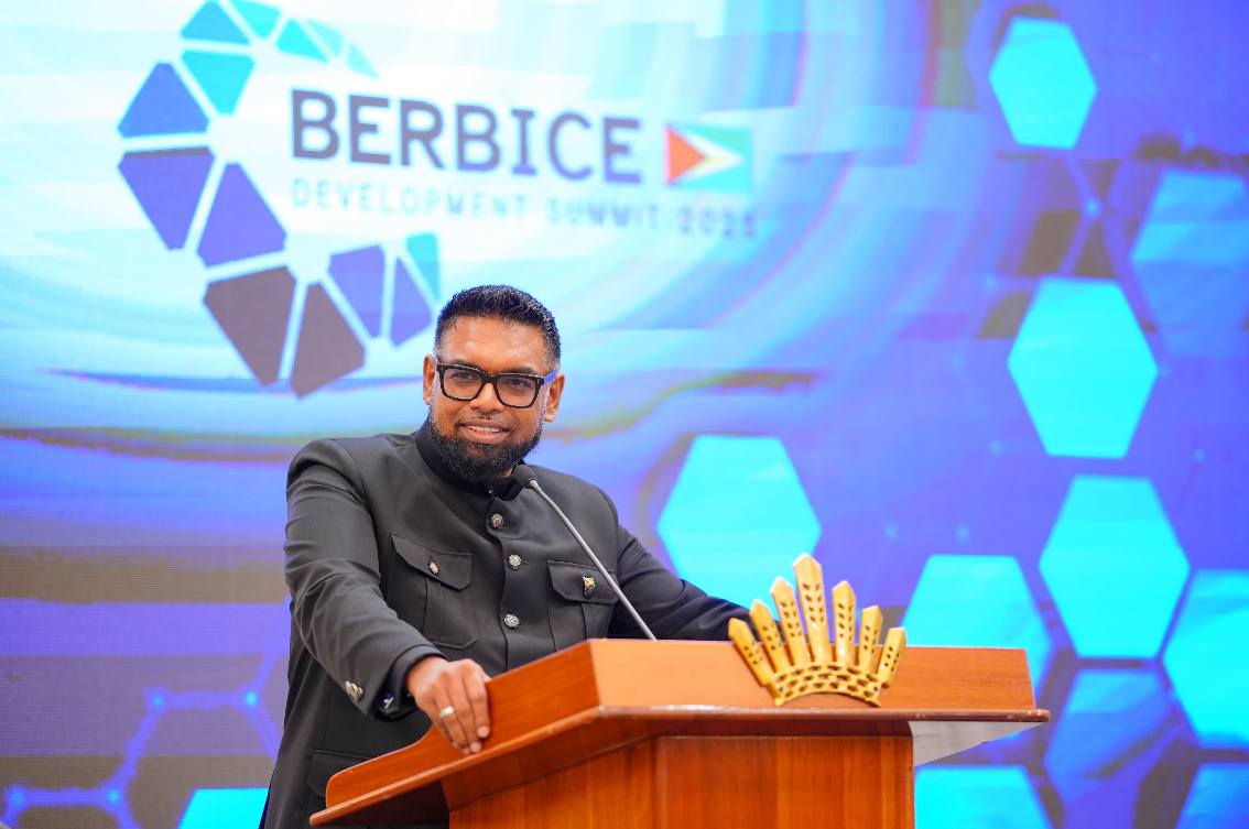 El presidente Irfaan Ali hablando en el foro (foto de la Oficina del Presidente) – El presidente dice a la Cumbre de Desarrollo de BerbiceEl presidente Irfaan Ali enfatizó ayer que la monetización de los recursos de gas de Guyana para una fecha límite de 2030 es una prioridad y señaló a ExxonMobil y sus socios que si no se alinean con esta visión de permitir a los ciudadanos de este país maximizar ese recurso, habrá consecuencias. “Y lo más importante, para el consorcio en (el) Stabroek (Bloque), la opción debe conducir a la monetización antes de 2030. No estoy dispuesto a impulsar la monetización más allá de 2030. Constitucionalmente, tengo elecciones en 2031 y no puedo volver a postularme, y no dejaré esta decisión en manos de nadie después de mí. Por lo tanto, cualquier opción que no permita a este país monetizar el gas antes de 2030 no tendrá el tipo de apoyo que me gustaría brindar”, dijo Ali en la Cumbre de Desarrollo de Berbice que comenzó ayer y concluirá hoy, en el Hotel Marriott. en Kingston, Georgetown. “Creo que maximizar el potencial del petróleo acelerando el desarrollo debe ir acompañado de una inversión acelerada en el lado del gas. No es ni lo uno ni lo otro. Se trata de encontrar el vehículo, en los próximos días, que permita que estos factores que acabo de esbozar se hagan realidad…”, añadió.