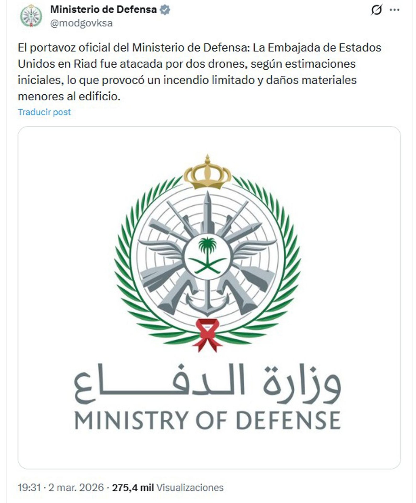 La embajada de Estados Unidos en Riad fue atacada por dos drones de Irán, lo que ocasionó “pequeño incendio y daños materiales menores en el edificio”, sin que se informara a las víctimas. En tanto, el presidente Donald Trump declaró a una corresponsal de News Nation que «pronto» descubrirá cuál será su represalia. La misión diplomática estadounidense en el reino saudí había emitido una alerta de seguridad en la que ordenó a su personal y recomendó a los ciudadanos estadounidenses “refugiarse” en Yeda, Riad y Dhahran, además de limitar los desplazamientos no esenciales a instalaciones militares en la región. “La Misión de Estados Unidos en Arabia Saudí continúa monitoreando la situación regional”, señaló el aviso, que instó a los estadounidenses a “mantener un plan personal de seguridad”, “evitar manifestaciones y grandes concentraciones” y “seguir las instrucciones de las autoridades locales”. La cadena CNN informó, citando fuentes cercanas al caso, que los drones estarían presuntamente vinculados a Irán, extremo que no ha sido confirmado oficialmente por Washington ni por Riad. Según esas fuentes, no se registraron heridos. El ataque se produce en medio de una fuerte escalada regional. La Guardia Revolucionaria iraní anunció el lanzamiento de una decimotercera ola de ataques contra bases estadounidenses en países como Kuwait y Emiratos Árabes Unidos, así como contra Israel, en el marco de una operación denominada “Promesa Verdadera 4”. El Departamento de Estado estadounidense pidió este lunes a sus ciudadanos que abandonaran inmediatamente 14 países y territorios de Oriente Medio, incluida Arabia Saudí, debido a «graves riesgos» para su seguridad a raíz de la guerra contra Irán iniciada el fin de semana por EE.UU. e Israel. EFE