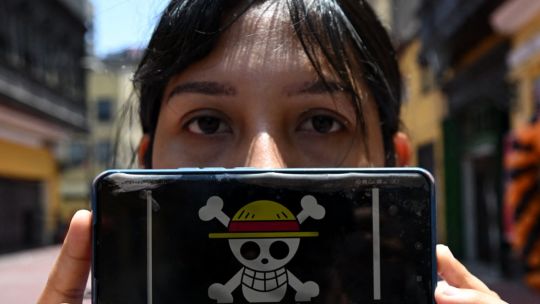 Las protestas se organizan a través de las redes sociales y, al igual que jóvenes de Indonesia, Nepal y Madagascar, ondean banderas piratas del manga japonés. Una pieza mientras habla.