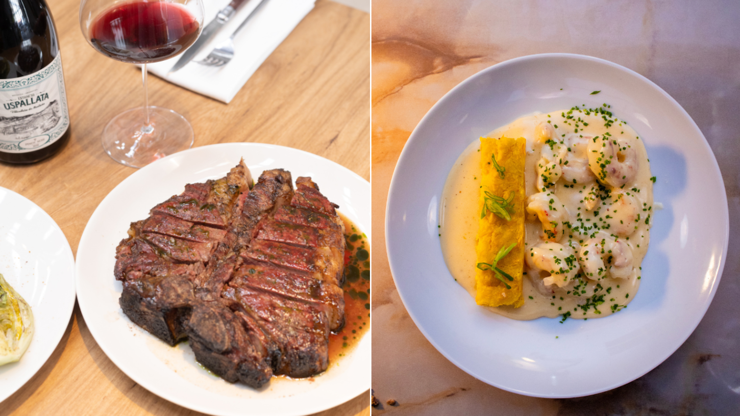 Two of the most interesting restaurant openings this year join the ranks of the great fine dining options available in Buenos Aires. Their added value, however, comes in the form of presentation, as they offer top-notch gastronomy without the stiffness or self-importance often associated with it. Meet Silvino and Mambo. These two standout debuts of 2025 share a commitment to excellent produce and solid technique while keeping the experience approachable, warm, and grounded in pleasure rather than performance. While different in scale and tone, both restaurants let craft speak for itself. At Silvino, chef Gaspar Natiello channels precision into generous dishes served in a relaxed neighborhood bistro. Mambo, in turn, embraces memory and abundance, translating Argentine traditions into bold, shareable plates. Silvino Guevara 421, Chacarita8 p.m. to midnightPatrons can secure reservations or get a table on a first-come, first-served basisInstagram: @silvinoquerido Silvino is a new addition to the well-established gastronomic hub on Jorge Newbery Avenue in Chacagiales. Discreet and warm, the bistro successfully evokes a familiar, neighborhood feel — both in ambiance and menu — in an area always open to fresh options. The veal and the shrimp dish (Credit: courtesy of Silvino). Owners Juan Manuel Boetti Bidegain, Roberto Cardini, and Gonzalo Fleire also run Sifón, a relaxed vermouth-oriented eatery right around the corner. Located on what used to be the owners’ former Sede Whisky bar on Guevara Street, Silvino kept some of the same spatial organization. There’s a long bar with stools in addition to the comfortable tables in the salon, which features an open-view kitchen. A long wall mirror peppered with candles, bottled wines, and retro objects strengthens the laid-back feel in a playful yet sober atmosphere. Chef Gaspar Natiello, who founded well-known eatery Ajo Negro after working in established places like Sarasa Negro and Chiuso, is adamant about aiming for a simple, no-nonsense joint. The inside of Silvino (Credit: courtesy of Silvino). In his own words, Silvino is against the idea of “chefs as artists” who are indifferent to the patrons’ actual experience. Silvino’s overall identity is a pretty clear nod to French cuisine, while also remaining open to new ideas. The result is generous, artifice-free food with few ingredients and ingenious techniques, closer to comfort food than high-end cooking. Although the menu is constantly changing, a few of Natiello’s inventions have managed to stick around. One example is the chicken paté with pear jam, pickled cucumbers, and old mustard. Another is what he calls “The Yummiest Part of the Flan,” a thin version of this traditional Argentine dessert that focuses on the caramel-rich top, served with a dulce de leche cream. The paté (Credit: courtesy of Silvino). Other highlights include the baby squid in Amatriciana style and the fish served with sweet potato puree, roasted onion and chermoula — by the time you read this, though, there are probably new dishes worth trying. Mambo Malabia 820, Villa CrespoTuesday to Saturday, 7 p.m. to 11 p.m.Wednesdays to Sundays, 11:30 a.m. to 3 p.m.Instagram: @mambo.restoran Set in a huge former factory in Villa Crespo with stripped-down walls and 10-meter ceilings, Mambo’s entrance welcomes you to a long salon crowned by an open kitchen ruled by the grill and its endless chimneys. The T-bone steak and the kale (Credit: courtesy of Mambo). Founded by chefs Santiago Pérez (formerly head chef of Las Flores, one of the trendiest eateries in Palermo) and Calvin Daniele, Mambo aims for down-to-earth cuisine while also employing fine dining techniques and premium ingredients. On that same relaxed note, the well-thought-out wine selection by sommelier Lucas Rothschild is both accommodating and diverse and as much fun as his insights and suggestions. “Biographical” is another way to describe Mambo’s menu. As Pérez himself told the Herald, the menu evokes his childhood in Lobos — a town in Buenos Aires province — among outdoor fogones, morning butcherings, homemade sausages, and things cooking in pans for hours. Mambo also brings together the experience both chefs have with recipes from other Argentine regions and a drive that steers clear of ornamental cooking, opting instead to focus on depth and contrast. The inside of Mambo (Credit: courtesy of Mambo). The rotating offer is made up of shareable main dishes. And while beef is a main protagonist — a great T-bone is definite proof — there are plenty of other products to choose from. Seasonal vegetables are a key part of the ensemble. The roasted cabbage with a caju dressing and chili crunch has deservedly become a patron favorite, together with the marinated kale salad with baked grapes, labneh, salted granola, and Parmigiano. The range of the food is wide as the space, from sophisticated appetizers like the profiterole with lemon butter, paté, and kumquats to the roasted chicken, which sounds simple enough — until you try it with the crispy rice that sits below, that is. The same kind of surprise awaits with the ricotta and potato gnocchi with green sauce. The cabbage dish (Credit: courtesy of Mambo). The dessert list is short but powerful. Pastry chef Catalina Froschauer’s banana tatin is a special treat, a quiet flavor bomb served with vanilla ice cream and dulce de leche that will linger in your mouth long after you leave Mambo. Cover photo: Mambo’s T-bone steak and Silvino’s shrimp