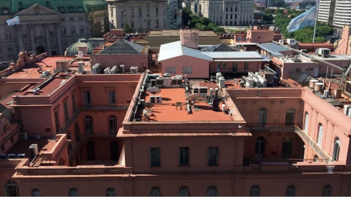 El periodista Jon Heguier fue quien grabó un video en donde se observa a dos personas en el techo de la Casa de Gobierno, incluso bastante cerca de las barandas.