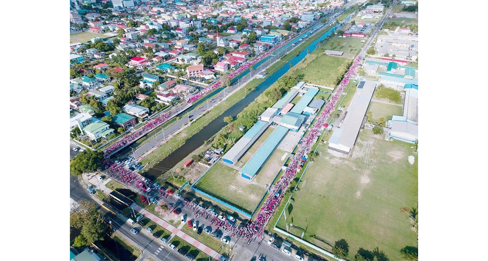 ¡Ola rosa! Miles de personas, jóvenes y mayores, vestidos de rosa, se reunieron en el terreno de la Asociación de Exploradores en Woolford Avenue para la caminata One Pinktober 2025. Dirigido por el Ministro de Salud, Dr. Frank Anthony, y sobrevivientes de cáncer, el evento fue una poderosa muestra de unidad, fuerza y ​​esperanza. También reforzó el mensaje de detección temprana así como la necesidad de esfuerzos colaborativos y una muestra de apoyo para luchar contra la temida enfermedad (foto de One Communications).