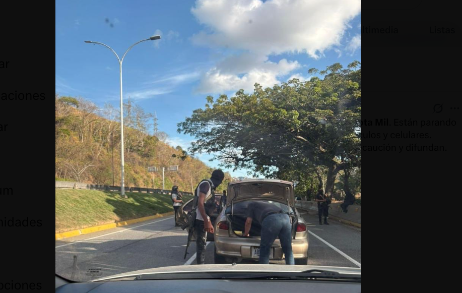 Las detenciones de dieron en Caracas, Vargas, Mérida, Miranda y Bolívar La organización Caleidoscopio Humano contabilizó para el mediodía de este martes 6 de enero que por lo menos dos ciudadanos permanecen detenidos después de ser revisados en alcabalas por civiles armados y ser acusados de celebrar “la detención” de Nicolás Maduro. Según un informe enviado a Efecto Cocuyo por la organización, al menos seis personas fueron retenidas en las últimas 24 horas, pero de ellas solo dos permanecen bajo arresto. Dos de las detenciones, según Caleidoscopio Humano, se llevaron a cabo en puntos de control de la ciudad de Caracas, mientras que se registró un detenido en cada uno de los estados Mérida, Vargas, Miranda y Bolívar. porque la mayoría de estas revisiones y detenciones se están realizando por civiles armados, que no están identificados como miembros de algún cuerpo de seguridad del Estado. “Tenemos mucha preocupación, sobre todo por las revisiones ilegales en alcabalas, e incluso la mayoría de estos reportes son de personas no identificadas como policías, sino civiles armados”, dijo Gabriela Buada, coordinadora general de la ONG. No se sabe de quién vienen las órdenes. A pesar de las detenciones recientes, Buada aseguró que el anuncio de la liberación de los 14 periodistas detenidos este lunes 5 de enero, mientras daban cobertura a la instalación del nuevo período legislativo en Caracas, es un alivio, pero señaló que la situación en el resto del país por las revisiones en alcabalas y revisiones a teléfonos no es un buen indicio. “No se sabe de quién pueden venir las órdenes, qué tipo de situación está pasando; ese intento de normalidad profundiza la incertidumbre y genera mucho miedo y puede ser de preocupación en cuanto a la profundización de las violaciones de derechos humanos”, explicó. La defensora de derechos humanos agregó que en los seis casos documentados no hay un perfil específico al que los civiles armados busquen detener y que les revisan el teléfono, las galerías, los mensajes y stickers para conocer si estas personas están o no promoviendo la invasión. “Todo parece indicar que es un patrón de intimidación”, dijo. Dos detenidos por celebrar lo ocurrido en Venezuela La coordinadora general de la ONG Justicia, Encuentro y Perdón, Martha Tineo, señaló que hasta la 1 pm de este 6 de enero tienen en sus registros la detención de al menos dos personas en el estado Mérida por presuntamente compartir contenido de celebración tras lo ocurrido en Venezuela, la madrugada del 3 de enero. Aunque la organización defensora de los derechos humanos no tiene dentro de sus registros detenciones en puntos móviles o alcabalas, señaló que están “haciendo seguimiento a la extrema vigilancia en los puntos de control móviles y revisión de teléfonos”.