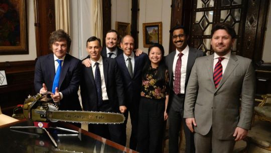 También estuvo presente Demian Reidel, asesor de Milei y presidente de la estatal Nucleoeléctrica Argentina SA, que el gobierno pretende privatizar parcialmente.