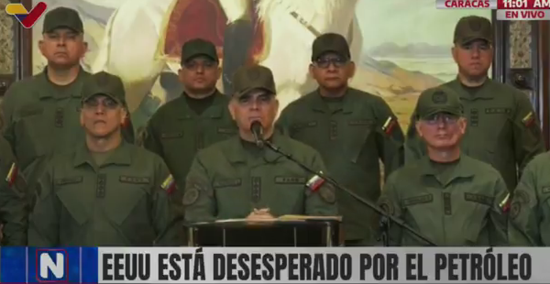 El ministro de Defensa, Vladimir Padrino López, afirmó este miércoles que la Fuerza Armada Nacional Bolivariana (Fanb) preservará «a toda costa» la integridad territorial y el actual sistema «constitucional y democrático» tras el anuncio del Gobierno de Estados Unidos de bloquear todos los buques petroleros sancionados que entren y salgan del país. «La Fanb, cumpliendo estrictamente las órdenes impartidas por nuestro comandante en jefe, con serenidad imperturbable, sin caer en provocaciones (…) preservará a toda costa el actual constitucional y democrático, así como la integridad territorial del país», señaló Padrino López al leer un comunicado en una transmisión del canal estatal Venezolana de Televisión (VTV).Además, dijo que la Fuerza Armada defenderá los «legítimos derechos sobre sus espacios aéreos y marítimos, y de forma irreductible defenderá su libertad, soberanía, independencia y paz». ya su presidente que no nos intimidan sus burdas y soberbias amenazas (…) y que la dignidad de esta patria no se negocia ni se amilana ante nadie», añadió.A juicio de Padrino López, la orden de Trump de bloqueo de buques petroleros sancionados viola «flagrantemente la Carta de las Naciones Unidas en cuanto al respeto de la soberanía de los Estados y la resolución de controversias por medios pacíficos». deben reflexionar y actuar ante esta actitud guerrerista demencial, que pone en riesgo no solo a Venezuela, sino a toda la región latinoamericana caribeña, y la estabilidad energética mundial», apuntó.