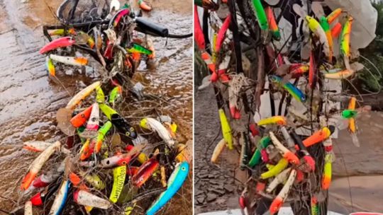 Pesca con sorpresa: recuperan un árbol repleto de señuelos perdidos