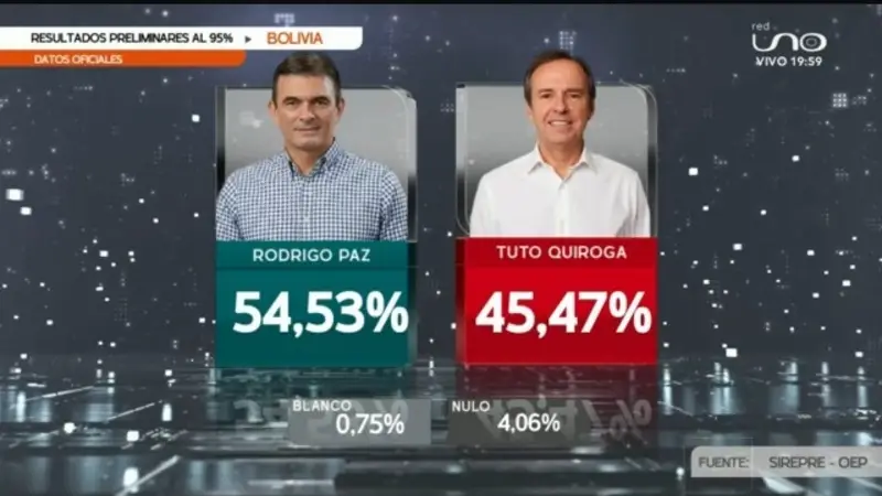 Bolivia decidió en una histórica segunda vuelta el binomio Rodrigo Paz Pereira – Edmand Lara Montaño, del Partido Demócratas Cristiano (PDC) son los nuevos mandatarios de Estado con el 54,53% de la votación. Dejando en segundo lugar al binomio Jorge “Tuto” Quiroga Ramírez – Juan Pablo Velasco, de la Alianza Libre con el 45,5%., según el informe del Tribunal Supremo Electoral (TSE).