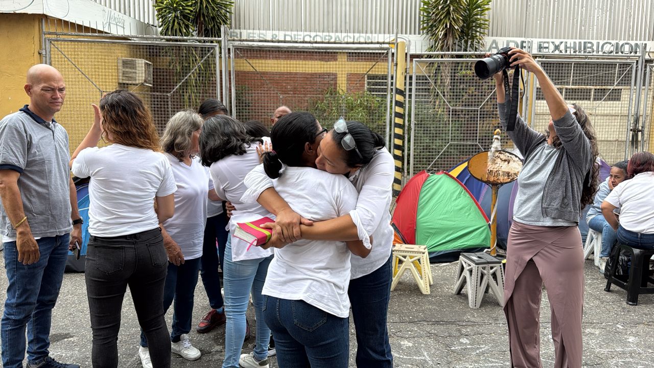 La cera que rodea al centro de detención de la Policía Nacional Bolivariana (PNB) en Boleíta, conocida como Zona 7, al este de Caracas, ya no es una vía de tránsito común. Desde hace 20 días es un campamento de resistencia de familiares que exigen la libertad de los presos políticos. Este miércoles 28 de enero, 19 carpas marcan el territorio donde madres, esposas y hermanas desafiaban la incertidumbre, el frío de la madrugada y la esperanza de poder ver en libertad a sus familiares. La esperanza se reactivó tras el anuncio de Jorge Rodríguez el pasado 8 de enero, cuando prometió la excarcelación de un grupo importante de presos políticos. Desde ese momento, familias de los estados Bolívar, Zulia, Sucre, Táchira, Miranda, entre otros, recorrieron cientos de kilómetros hasta la capital. Muchas de estas familias buscaban a personas que permanecieron bajo desaparición forzada durante más de 60 días, tras arrestos ejecutados en noviembre de 2025 que no figuraban en los registros de las ONG por el miedo a las represalias.El colapso físico La espera ha pasado factura. En el campamento, las escenas de desmayos y crisis de hipertensión son frecuentes. La tarde de este martes, algunos familiares tuvieron que ser atendidos por equipos de primeros auxilios de la alcaldía del municipio Sucre. Una de ellas fue Marina Saldivia, de 66 años de edad, quien llegó desde el estado Bolívar, el pasado 17 de enero, con la esperanza de saber dónde están sus dos hijos, su nieta y su yerna en desaparición forzada. El estrés, la preocupación y la falta de respuestas, ha llevado a varias madres al límite de la descompensación. Sin embargo, ninguna se retira.«Aquí seguimos. Se nos baja la tensión, nos doblamos del dolor, pero nos levantamos porque ellos nos necesitan», relata una de las mujeres mientras sostiene una pancarta. A pesar de que los funcionarios negaron sistemáticamente la presencia de los detenidos en ese recinto durante semanas, las «corazonadas» de las madres y los datos extraoficiales resultaron ser ciertos. En la Zona 7 sí hay presos por motivos políticos. “Lo pude ver. Está vivo, quiero que lo liberen de inmediato. Pero estoy un poco más tranquilo porque sé que está vivo”, dijo una de las madres al momento que salió del recinto policial que alberga a más de 30 detenidos por motivos políticos. Pálidos y delgadosEste martes, por primera vez en dos meses, las autoridades policiales abrieron el perímetro de seguridad para permitir el ingreso de familiares en grupos de ocho y diez personas para obtener la fe de vida que tanto pidieron las madres. Al salir de los calabozos, los testimonios coincidieron en la descripción del estado físico de los detenidos: todos perdieron peso de forma drástica, palidez extrema por la falta de exposición al Sol y un deterioro general tras 60 días de encierro sin contacto exterior.Las filas para ingresar a la sede policial se extendieron desde la mañana hasta las 5:00 pm El llanto al salir del recinto no era solo de tristeza, sino de la confirmación de que sus seres queridos, aunque debilitados, están vivos. Un campamento que no se levanta El ambiente en la Zona 7 fluctúa entre la alegría del reencuentro y la incertidumbre de la larga espera de los trámites administrativos para lograr la excarcelación. Las familias permanecen apostadas en las aceras, vigilan cada movimiento de los agentes de seguridad que desplegaron un vehículo que impide el acceso a la comisaría donde se encuentran los disidentes. Los familiares no aceptan promesas a los medios; exigen que se cumpla la orden de excarcelación de manera inmediata. “Solo queremos que le den la libertad a todos los presos políticos”, afirmó Petra Vera, cuñada de Wilfran Perea, detenida en noviembre de 2025 en Maracaibo, estado Zulia. Petra dice que no se va a mover del lugar hasta que su cuñado salga en libertad. La certeza sobre las excarcelaciones ni siquiera la tienen los funcionarios de la PNB que se encuentran desplegados en los afueras de la comisaría. Uno de ellos aseguró a Efecto Cocuyo que no tiene conocimiento de sí se producirán excarcelaciones o no. Lo que sí han tratado, en reiteradas oportunidades los funcionarios, es que el campamento sea levantado, pero las madres justifican que su presencia en el lugar no obstaculiza la vía pública, tampoco atenta contra el orden y menos pretenden generar hechos de violencia. Solo piden la libertad de los suyos, presos por motivos políticos. Ante el intento de negociar el levantamiento del campamento, las madres y familiares han sido claras: Mientras no se produzcan las boletas de excarcelación, las 19 carpas seguirán ocupando la acera. “Se nos acabó el miedo”, sostienen.