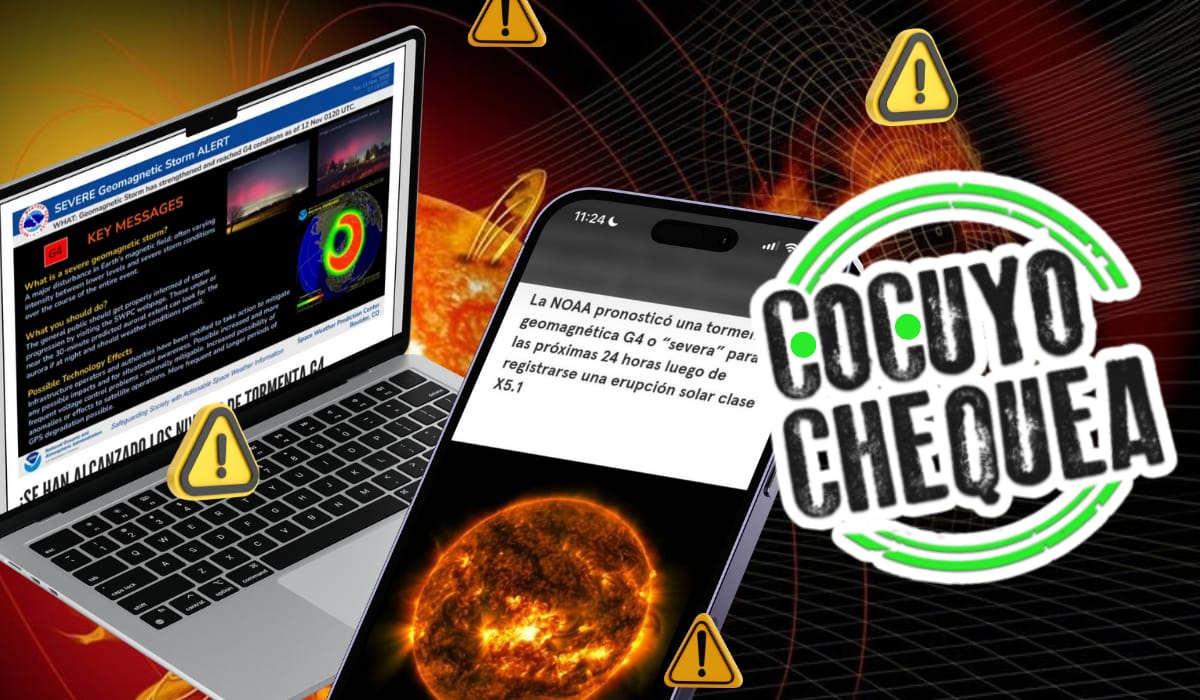 Si tienes poco tiempo, lee los puntos clave para entender este fenómeno solar: Qué no va a pasar: no esperamos un “apagón mundial” ni un colapso general de telecomunicaciones, y si hay fallas, suelen ser breves y localesQué sí puede pasar: pequeñas fallas momentáneas en radio, GPS o utras señales, las empresas de electricidad y satélites hacen ajustes preventivos. Los estados del norte de EE.UU. pueden apreciar auroras boreales en lugares poco habitualesQué hacer: no entrar en pánico. Si notas fallas de señal telefónica, espera unos minutos o cambia de ubicación: lo normal es que se restablezca soloLa Administración Nacional Oceánica y Atmosférica de Estados Unidos (NOAA, por sus siglas en inglés), advirtió que desde el 9 hasta el 12 de noviembre de 2025 habrá una tormenta geomagnética, la cual altera el campo magnético de la Tierra por el repentino aumento de partículas emitidas en las erupciones solares.Esta tormenta puede tener consecuencias tecnológicas. Según el aviso del 11 de noviembre de 2025, la NOAA alerta que “Es posible que se produzcan impactos perjudiciales en algunas de nuestras infraestructuras tecnológicas”. Sin embargo, en los avisos de este 12 de noviembre de 2025, aclara que “Se ha notificado a los operadores de infraestructura ya las autoridades para que tomen medidas para mitigar cualquier posible impacto y para estar al tanto de la situación. Posibles problemas de control de voltaje más frecuentes, normalmente mitigables. Mayor probabilidad de anomalías o efectos en las operaciones satelitales”. A nuestro chatbot La Tía del WhatsApp, que también se encuentra en Telegram, llegó una imagen que advierte: “Este 12 de noviembre es probable que caigan las señales de las telecomunicaciones en varias regiones del mundo: teléfonos, sistemas de navegación, GPS, radio AM/FM, wifi, satélites… Esto por una llamada solar potente desde noviembre de 2024, la más potente de noviembre de 2024.”Si bien el NOAA no advierte estos efectos tecnológicos globales, explicaremos de qué se trata este fenómeno solar y qué consecuencias terrestres tiene. Este chequeo es el resultado del apego riguroso a nuestra metodología de verificación, tras el análisis y contraste con las evidencias disponibles y no representa opiniones o juicios de valor, tal como lo establecemos en nuestra Política de Neutralidad y Apartidismo, en la que advertimos las limitaciones al ejercicio del periodismo en Venezuela. Así que te contamos los detalles.Entendamos la tormenta geomagnética y su intensidad. Las tormentas geomagnéticas se dan cuando las partículas solares son expulsadas a gran velocidad, golpeando el campo magnético de la Tierra. En el caso de esta tormenta de noviembre de 2025, la NOAA explica que se debe a las Eyecciones de Masa Coronal (EMC), las cuales son expulsiones repentinas de gas, emitidas de forma abrupta desde la corona del Sol.Según el reporte de la NOAA, la “EMC más reciente ocurrió la madrugada del 11 de noviembre [de 2025] y es la más energética y rápida de todas”, ya que se controlan “con una llamada solar”. Este fenómeno, es una explosión gigante en el sol que envía energía, luz y partículas de alta velocidad al espacio, según la definición de la NASA. más de 10 veces la potencia de una X1”, por lo que estas se representan con X, sumando una escala numérica, como explica la NASA. Respecto a la llamadada del 11 de noviembre de 2025 tuvo una intensidad X5.1 con un alerta de apagones de radio R3 (fuerte), “la más intensa registrada en lo que va de 2025 y la más fuerte desde octubre de 2024”, según la NASA.Aunado a ello, según el reporte de la NOAA, la EMC también está asociada a una tormenta de radiación solar que, aunque es un fenómeno que puede ocurrir por separado de la llamada solar, en esta ocasión coincidió. No obstante, “esta tiene un nivel moderado (S2) que actualmente está en curso”. Por otra parte, la tormenta geomagnética prevista para hoy 12 de septiembre de 2025, hacia las 7:20 de la noche (horario del norte de Estados Unidos), puede alcanzar el nivel G4, calificado como “severo” según. la escala meteorológica espacial de la NOAA, siendo G1 la escala “menor” y G5 la “extrema”. ¿Cuáles son los verdaderos efectos? Ahora bien, entendiendo todos los fenómenos que conlleva esta tormenta geomagnética, explicaremos las consecuencias biológicas y tecnológicas, tomando en cuenta la clasificación de potencia de cada evento. que podía ocasionar un apagón de área amplia de la comunicación por radio de alta frecuencia, y pérdida de contacto por radio durante aproximadamente una hora en el lado iluminado por el sol de la Tierra, así como degradar las señales de navegación de baja frecuencia; solo ocurrieron cortes significativos en las transmisiones de radio sobre África y Europa, pero “no se reportaron daños permanentes”, según la NASA. Respecto a la tormenta de radicación solar de nivel moderado (S2), esto puede exponer a un riesgo elevado de radiación a tripulantes y/o pasajeros de aeronaves que vuelan a gran altura en latitudes elevadas, la Universidad Nacional Autónoma de México (UNAM), emitió un informe en el que aclara que “este tipo de eventos no tiene efectos directos sobre el organismo humano, ya que la alteración ocurre en la interacción entre la radiación solar y los sistemas de magnetismo terrestre, sin representar riesgos fisiológicos”, como detalla el medio mexicano Expansión. Por último, si la tormenta geomagnética llega al nivel G4, pueden ocurrir “fallos o interferencias en las redes eléctricas, anomalías en los sistemas de navegación por satélite, interrupciones en las comunicaciones por radio y perturbaciones en el funcionamiento de satélites y naves espaciales”, según National Geographic España, sobre todo hacia los estados del norte de Estados Unidos.Aunado a ello, como efecto de esta tormenta, en 